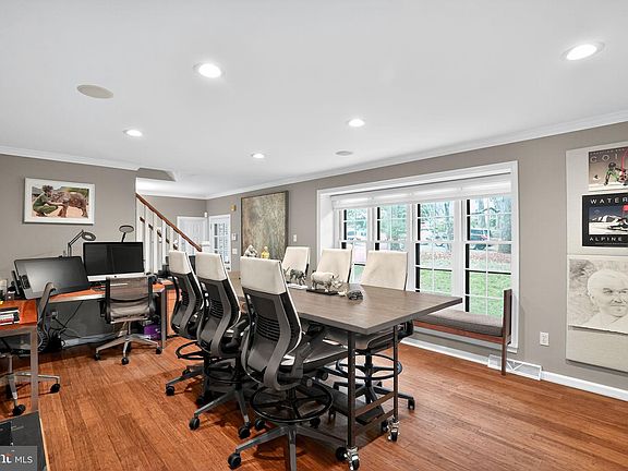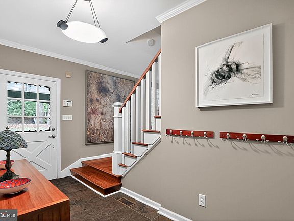 Step into elegance with bamboo hardwood floors flowing through the open concept living and dining areas. The upgraded kitchen features premium Miele appliances, slate flooring, a built-in fridge, built-in coffee/espresso machine, and abundant cabinet and drawer space—perfect for both everyday living and entertaining. The adjacent family room showcases a stunning stone wall gas fireplace and opens to a private back deck that backs up to peaceful woods. Enjoy the convenience of first-floor laundry, half bath and a newly renovated walk-out basement ideal for office or bonus living space. Crown molding throughout, ceiling fans in all bedrooms, and a primary suite with walk-in closet, built-ins, and a beautifully updated bath. The second-floor hall bath is also refreshed. Additional highlights include a whole-house water filtration system, new HVAC and heater (2024), and a 2-car attached garage with Tesla charger. This home blends comfort, style, and smart upgrades in a sought-after Cherry Hill neighborhood.