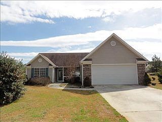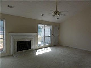 Adorable move-in ready ranch with low maintenance stone/vinyl exterior. Entrance foyer opens to dining room and great room, which share a vaulted ceiling (The dining room, great room, and kitchen walls are open at the top where the vault extends above them). The spacious great room features a fireplace with tile surround and access to the back patio, as well as entry to the kitchen and the master bedroom. The kitchen has an abundance of cabinetry, two ceiling fans, a breakfast area, and a dishwasher and electric range/oven. The spacious master suite easily accommodates a king-size , and opens to the master bath with an oversized vanity, garden tub, and separate shower. Large, easy-care level back yard includes a storage shed for your equipment.