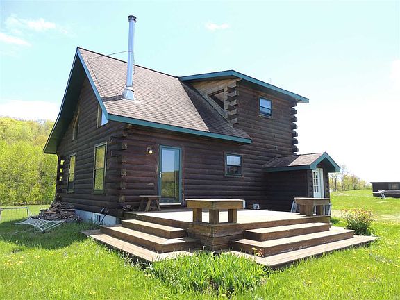 Well off the beaten path, on the end of a long semi private driveway. 50 acres offering forestland, pastureland, meadows, fantastic views of VT Green mountains, Adirondack mountains. 2 ponds, wildlife. Lincoln log home, cathedral ceiling. nice deck! 20X70' green house, chicken house, garden shed. 3 separate deeds total the 50 acres. There is also a loft bedroom.