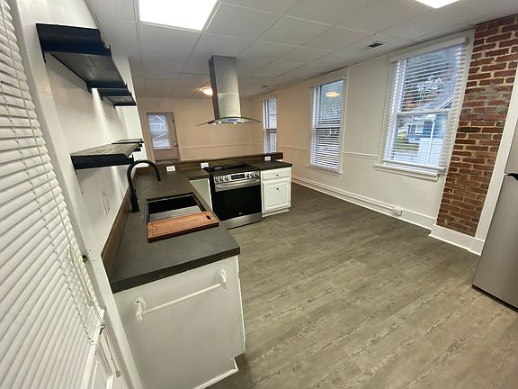 This Woodsdale rental was updated to provide contemporary housing in a historic building in a convenient location. Featuring two large bedrooms and one bath, the apartment This 2-bedroom, 1-bathroom apartment is the perfect place to call home. Our newly renovated open-concept living and dining space, comes complete with a modern eat-in kitchen that includes a garbage disposal, stainless steel appliances and concrete countertops with large windows all around that allow natural light. The spacious bedrooms both include large closets and large windows as well. An updated bathroom along with in-unit laundry facilities, ample storage space, and central heat/air make this apartment the perfect place to reside. 12 month lease. $900 security deposit due at lease signing. Cat okay with approval. $200 pet fee Water, sewer, and garbage included. Tenant pays gas and electricity. No Smoking. Street parking.