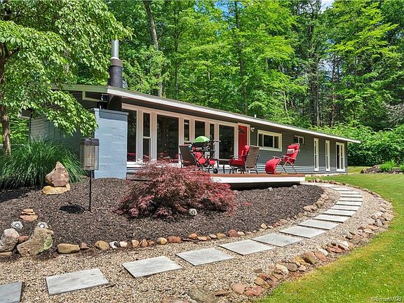 Do not miss this turn key mid-century modern ranch designed by Robert Carroll(Frank Lloyd Wright apprentice.....This property is located in a tranquil setting on an acre lot backing up to 50+ acres of town owned conservation land close to the Avon/Simsbury line. The home itself updated inside & out...kitchen, baths, windows, roof, floors, heating/cooling deck & much more This home will not last.
