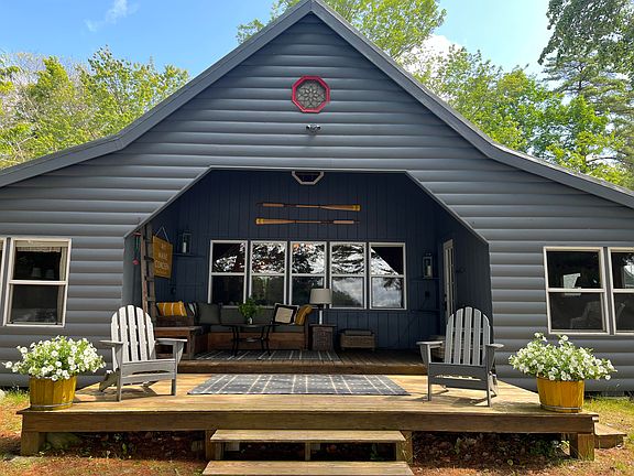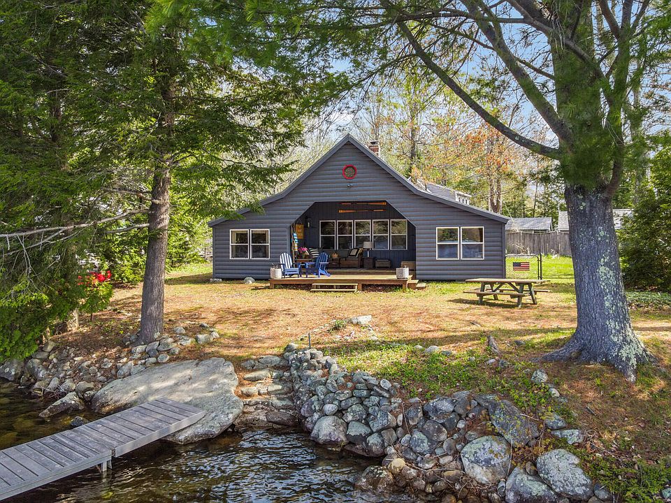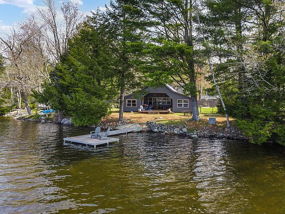 GREAT POND Come spend the summer at this 1920 vintage 4BR/1BA camp that sits right next to the lake! Camp has been recently updated and offers one-level living with a level lot just a few steps away from your private dock, 90' of lakefront and open views! The living room overlooking the lake is the focal point of this camp and features cathedral ceilings, a nice wood stove with brick mantle providing ambiance and heat on those cool evenings and opens onto the lovely porch and lakeside deck. A large dining room perfect for sharing a special meal and cozy sitting area overlooking the lake opens to the kitchen that is fully equipped with a full fridge, electric range, microwave and dishwasher to make all those special meals while on vacation and also has an eating area. Off the living room is the primary bedroom featuring beautiful wood flooring, closet and views of the lake from your bed. The second bedroom which sleeps four with vaulted ceilings and a closet is off the laundry room, while the third bedroom and a den that can also serve as a fourth bedroom for additional guests or home office are off the kitchen. Camp comes fully equipped with a full size washer and dryer as well as plenty of built-in storage space and a full bath with stand alone shower and large clawfoot soaking tub. Standing seam metal roof, updated electrical, storage shed for all your tools and toys, large attic space for additional storage, a dock system and most all furnishings will convey with the camp, so just get up here and relax! One of the best spots on the lake with long, unobstructed open views and southern exposure, all day sun followed by sunsets each day!