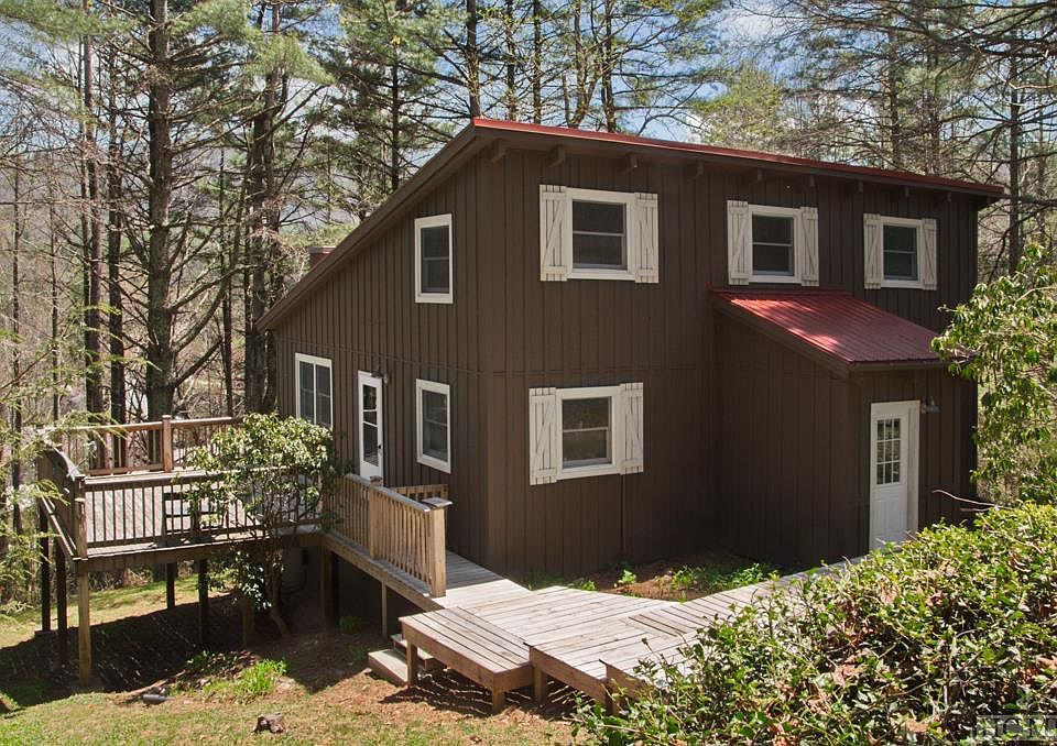 Convenient location off 107 with close proximity to Lake Glenville and Cashiers. Comfortable 3 bedroom, 2 bath home with nice outdoor deck in a wooded setting. Great open floor plan with high ceilings and a stone fireplace. Two bedrooms on the main level and a spacious bedroom/loft upstairs. Basement would make a great workshop, storage or craft room. Well priced for a market that's heating up! Would make a great starter home, vacation home or rental. 5 minutes to Cashiers. 5 minutes to Lake Glenville marina and boat rentals. 10 minutes to Lake Glenville public beach, boat launches and scenic "High Falls" double waterfall hike and Tuckasegee headwaters river access and hiking trail.