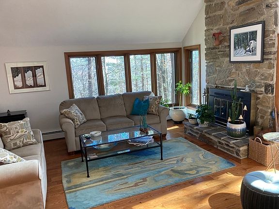 Recently updated custom contemporary on large private lot in lovely neighborhood close to the Worcester line offers 3 large bedrooms, 2.5 baths, open floor plan with young roof, new flooring, updated appliances, new boiler and hot water tank, and freshly painted inside and out. Large windows and skylights allow for sun splashed rooms, and second floor landing offers open office space. Wood stove insert in fireplace helps keep down heating cost! Plenty of storage - multiple large closets, first floor pantry and laundry area, and large closet in main bedroom, as well as private bath with shower. Exterior landscaping is easy upkeep with beautiful plantings and a firepit for family summer evenings. Private 1.5 acre lot abuts Asnebumskit Hill hiking trails and an easy access to Boynton Park and Cascades Conservation area. Must see this one - won't last long! Open house Sun 11/6 from 12 noon to 2PM