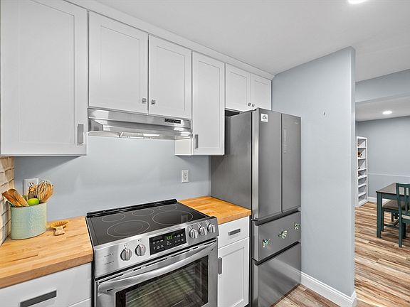 Updated kitchenDining roomSerene colorsRenovated bathroomStainless appliancesNewer cabinetryWarm inviting space