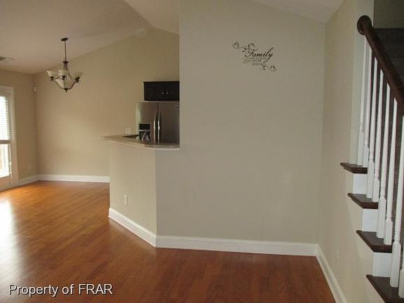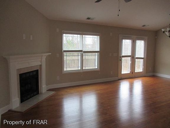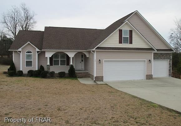 Great open floor plan with breakfast bar. Gas logs in the Great Room. Large kitchen nook and walk-in pantry. Master downstairs with garden tub and separate shower. Huge bonus room upstairs. Surround sound upstairs and down. Triple garage, deck and .99 acre lot. Convenient to Ft Bragg. Repairs are in progress.