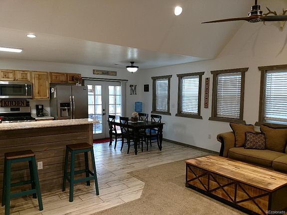 Looking for Low to No maintenance & RV Parking, then check out this 2 year old ranch home on a 10,000+ sq.ft. lot! This 3 bed/2 bath home is slab on grade, so no crawl space, no stairs! Maintenance-free exterior with Diamond Kote 30-year siding! Xeriscaped front yard for low -maintenance! Inside the custom features include 12' vaulted ceiling in the living room, all stainless steel appliances w/gas range, hand-cut wood trim throughout, tile floors in kitchen, and tile floors and surrounds in both bathrooms! Attached 2 car garage, plus a mud/dog room with access to backyard! There's more - the enclosed sunroom through the patio slider off the dining area! Bonus: there are no HOA's, and RV Parking/Toys are allowed! Great small town with gas, grocery, restaurants, auto parts, antique store, beauty shop, auto repair, Southeast Weld County Fair, Car Shows, Fireworks, so come check out Keenesburg!