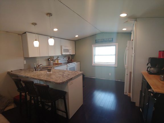 Newly updated home. Brand new wood flooring, cabinets, countertops, plumbing, and windows. Appliances, washer and dryer included. Throughout the home we will install trim, interior doors, and carpet in the bedrooms before close. Plus, funds will be given to assist buyer with replacing exterior siding, and shutters.. Lot rent $200/month
