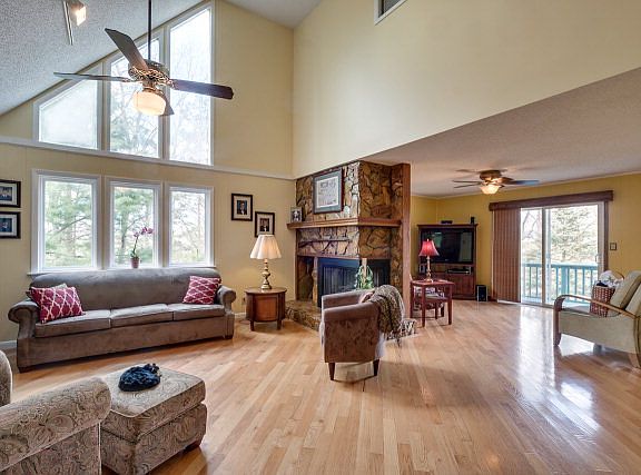 Thoroughly Modern with Room for a Crowd.. Entertaining's a dream home in this mountain escape! Expansive porch and two balconies.. potential in-law suite..space for cars,kids,pets, and company..it's all here.Clean lines,fresh paint, upscale finishes,and natural light grace this easy-living home with open main-floor plan and unique corner fireplace. Master bedroom has deck access,private bath,and tons of closet space. Fully finished lower level features full bed and bath,laundry,storage,family room or second living room, and additional kitchen. Gorgeous landscaping in front breathtaking mountain vistas in back.. sparkling clean and move-in ready. Just unpack, and get the party started!