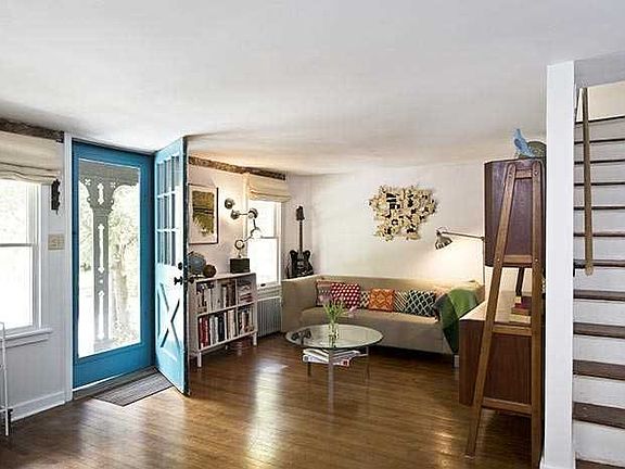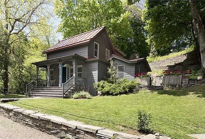 Quintessential Rhinecliff property located in this lovely hamlet, just blocks from the Amtrak station. Picture perfect, classic 2-story Folk Victorian home with a side-gabled metal roof & beautiful spindlework detailing on the front porch. Enter through the stylish front door into the contemporary open floor plan of the main floor, with living room, dining area and newly renovated kitchen. Generous outdoor dining & grilling stone patio off the kitchen. The main floor also has a bathroom with laundry plus an office that doubles as a guest room. The second floor has a master bedroom with access to another outdoor space, a second bedroom and a full bath. Outside, off-street parking for three cars, a garden shed & beautiful stone work complete this one-of-a-kind property.