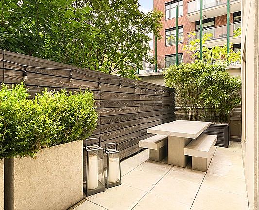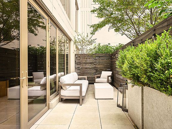 This striking one-bedroom, one-and-a-half-bathroom home with nearly 300 square feet of private outdoor space offers a rare blend of contemporary design and serene indoor-outdoor living.