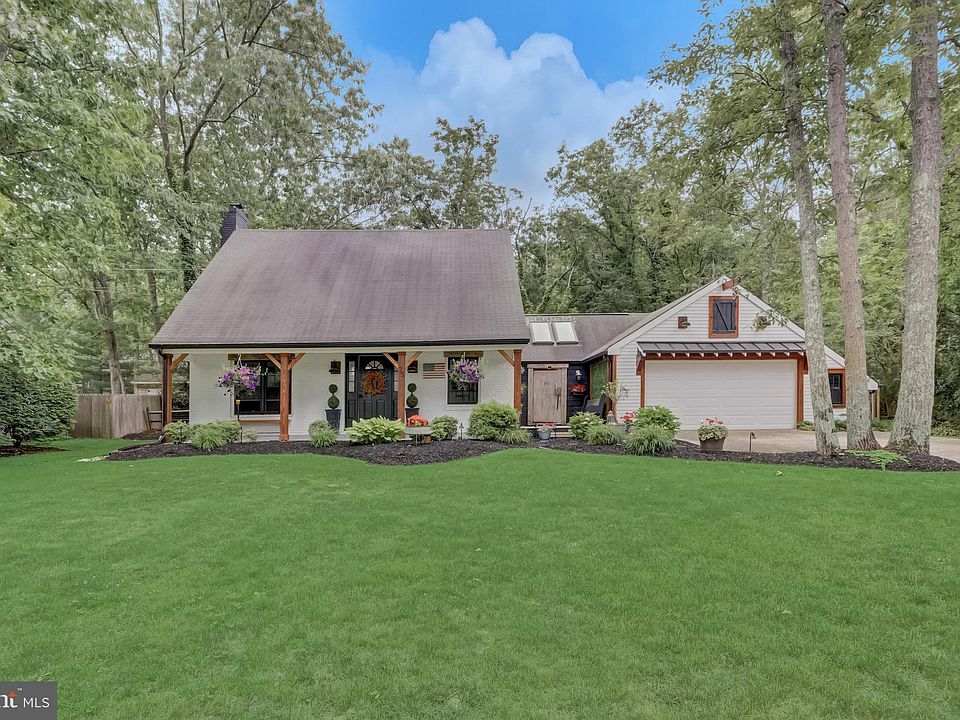 This spacious property in Medford Lakes combines the charm of a Modern Farmhouse with the classic Cape Cod style. It offers a range of desirable features, including a large garage, a finished basement with powder room, ample storage space, and a private backyard. The kitchen has been recently renovated and boasts modern appliances from Fisher Paykel, custom features, and LED lighting. The property also includes a screen porch and a great room, both of which have been renovated to create comfortable living spaces. Additionally, there is a new primary bath currently under construction. The basement has the potential to be used as a fourth bedroom or a play area. The flooring throughout the house consists of hardwood, tile, and luxury vinyl plank. Smart lighting and digital thermostats add convenience and energy efficiency to the home. A SoHo-themed cocktail room or potential home office provides a stylish and functional space. The living room features custom sliding barn doors and a wood-burning insert. The renovated screen porch showcases shiplap accents, a mahogany bench, and a TV enclosure. The front courtyard is decked & includes a semi living wall and the property includes cedar columns, shutters, and custom details. The backyard is fenced and features a stamped concrete patio prepped for 2 fire pits, perfect for outdoor entertaining. The property also benefits from a sprinkler system, LED lighting, and an ADT alarm for added security. With low taxes and utilities, this home offers affordability. Other notable features of the property include a well providing water for the house and irrigation, city sewer connection, a new French drain in the basement, and a 200 AMP electrical service. This property is located in the Medford Lakes school system. 6/19-OFFER ACCEPTED. NO MORE SHOWINGS