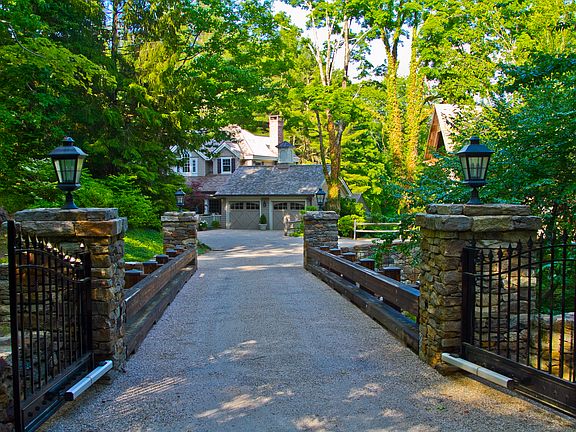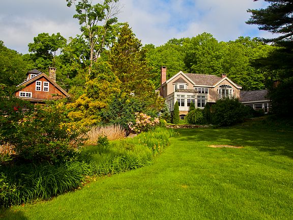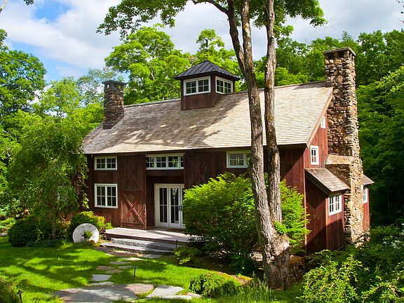 HERON MILL FARM. One of Litchfield County's most exquisite and well crafted estates. Through the gated entry, cross a sublime rushing brook and arrive at a property that has reset the standard for casual country elegance. Set on 27 scenic acres the estate features the three bedroom main residence, an historic 1790 gristmill, and a barn-style guest house/office. THE MAIN RESIDENCE exudes comfort - from extensive covered porches to four fireplaces, a warmth envelopes you within its walls. Stunning and bespoke craftsmanship, vintage wood floors, detail and millwork. The great room has a vaulted-ceiling, loft, distinctive stone fireplace, media center with surround sound, barnwood paneling with floor-to-ceiling bookshelves and a bluestone floor. The dining room with fireplace is lined with bookshelves. The kitchen is from a magazine, with walk-in pantry, wet bar and storage closet. An English-style sunroom is adorned with a striking copper cupola. There are three bedrooms, two of which are gracious master suites. The main floor master has wood-beam coffered ceiling, wood-burning fireplace, and large walk-in closet. The 2nd level master has a balcony overlooking the sweeping view of a quarter-acre pond and grounds, a large walk-in closet, and features a gas fireplace in the elegant bathroom. The partially finished basement contains a 1500-bottle wine cellar and walk-in cedar closet. The lovely stone patio has an outdoor wood-burning grill. Energy efficiency and eco-friendly systems are evidenced by the geothermal heating and air-conditioning system, the use of solar energy, and the micro-hydro system and dam. BARN GUEST HOUSE. The majestic 2100 sq. ft. post-and-beam barn was built in 2009. The interiors are exceptional: Large stone fireplace, lighted cupola, vintage hardwood floors upstairs, stone and brick floors downstairs. Radiant floor heat downstairs. There are 2 twin-sized window seat nooks that can double as beds. A screened-in balcony overlooks Sucker Brook below. The full kitchen has an updated vintage oven/stove. Other rooms: office nook, gym, laundry room, and full bath. French doors open onto a stone patio situated beside the old millstream. Solar panels and high-efficiency propane heating/air conditioning.GRISTMILL: Historic gristmill, built in 1790, features a dry-stacked stone foundation. Floor has been supported to accommodate light utility vehicle and trash storage.PROPERTY DESCRIPTION. The grounds exceed Relais and Chateaux standards. The landscape design is attributed to Michael Trapp and White Flower Farm. English gardens, running streams (Sucker Brook) with waterfalls, stonewalls, forested land throughout, and a charming quarter-acre pond with fish. A fenced raised-bed vegetable garden with adjacent potting shed is protected by solar-charged fencing. A lower barn has been retrofitted as a'sugar-shack' to take advantage of an abundance of sugar maple trees in the surrounding area (an estimated 3,000 taps). Decorative accent landscape lighting. Regulation horse shoe pit and archery range. Property Footnote: The home was formerly owned by Richard Widmark. Items from the gristmill are rumored to have been sent to his friend, Andrew Wyeth, for Wyeth's mill in Chadds Ford, Pennsylvania.