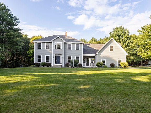 Searching for serenity, sunlight and space aplenty? This classic colonial offers 3,275 square feet of living space and 2.1 acres of lovely land, complete with a beautiful in-ground pool, hot tub and pool house. Amenities abound inside, where 4 bedrooms, 2.5 baths, huge windows, lofty ceilings, and pristine floors with radiant heat await. The kitchen's granite countertops, stainless steel appliances, double oven, gas cooktop and island with storage & seating will have you whistling while whipping up tasty treats. Mood-boosting natural light floods the seamlessly situated living area & formal dining room. A multi-use room and half bath complete the main floor. Rest and relaxation come easily in the primary en-suite bedroom upstairs, where abundantly sized built-ins, a soaring ceiling, walk-in closet and soaking tub set the stage for your personal oasis. Three additional bedrooms and a full bath afford plenty of space for sleepyheads, and the laundry room makes daily chores a breeze. Below deck, the finished basement inspires movie nights, workouts or home office endeavors. Prepare to fall in love with the spectacular setting outside, where the in-ground pool, pool house, hot tub, fire pit and deck are poised for memories-in-the-making. Outdoor enthusiasts will revel in the trails attached directly to the property. The two-car garage is ready to host cars, tools and toys. Windham is a welcoming locale where the best of all worlds converge - a peaceful life with proximity to anything your heart desires. This special spot is certain to be your pride and joy!
