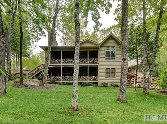 Offered fully furnished, enjoy this mountain home for all seasons with beautiful wood accents throughout making it warm, welcoming, and great for entertaining or just quiet times. A massive stacked stone fireplace, cathedral ceiling, and natural light from windows and a wall of patio doors enrich the great room. Open to the dining area, the comfortable kitchen has stainless steel, granite, and tile. The master suite is located on the main level and has direct access to the large screened-in back porch boasting a stone fireplace for cool summer evenings. The lower level of the home features a family room with fireplace and access to the lower screened porch. The gently rolling lot has mature woods and landscaping, a very impressive fire pit area, and even a kids' play house as a backyard treasure. Ownership/Membership will include generational privileges and all Trillium Links and Lake Club amenities including deeded lake access.