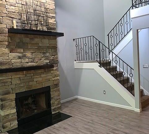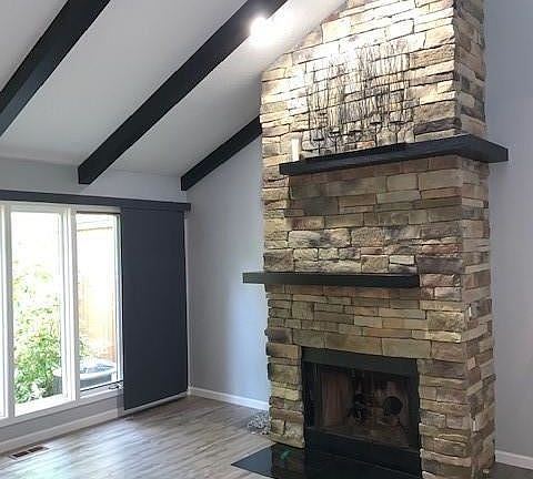 Enjoy carefree living close to all amenities! Updated 2BD/2.5BA has kitchen with SS app, eating area, newer laminate flooring throughout first floor. Updated powder room with marble vanity. Great room with beamed vaulted ceiling and stone fireplace. Agent related to seller.
