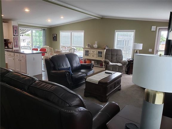 Open Floor Plan with Natural Light. Perfect condoalternative for privacy in your own home. 1,300 Square feet featuring an updated kitchen & dining area. Living room with cathedral ceilings. Large master Bedroom (15'.8" x 12'.6") with walk in closet & private full bathroom. 2nd bedroom is 11'.6" x 10'.3" with its own large closet. BONUS! 3rd bedroom/guest bedroom/office/extra storage area. Relax on the deck all day as the remote controlled awning keeps you cool in the shade. There is a good size shed for outdoor storage. And, an underground sprinkler system for low maintenance landscaping. Parking for 3-4 vehicles. This home was built in 2016, so everything is less than 3 years old. Call today for your private showing! Sorry, No Dogs allowed in Park.