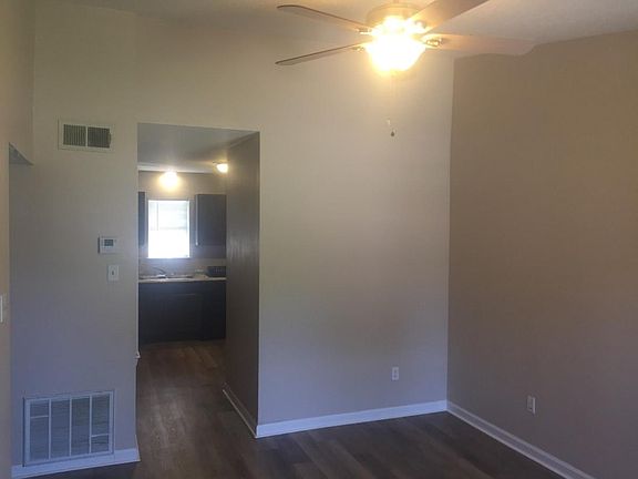 Two BR, 1 BA, 750 sq. ft. Updated paint, floors, kitchen, bathroom, dishwasher; has washer/dryer hookups. New kitchen cabinets, all new flooring, updated bath vanity, new HVAC. Large yard. Small attached storage unit. $550 per month; $550 deposit; $30 application fee per adult. Tenant responsible for electric and water, yard maintenance.