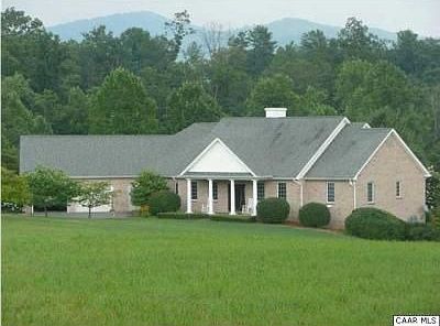 Privacy with panoramic views, beautiful sunsets, on ll acres, with easy commute to Charlottesville. Energy efficient, all brick, one-level home offers geothermal heating and cooling, walnut and oak hardwood floors, wheel chair accessible, 9' ceilings, 11' ceilings in Great Room, vaulted ceiling in master bedroom, chef's kitchen with granite counter tops, earth friendly appliances, gas cooking, central vacuum,36' x 18' brick patio, beautiful perennials, detached deck over looking lake.