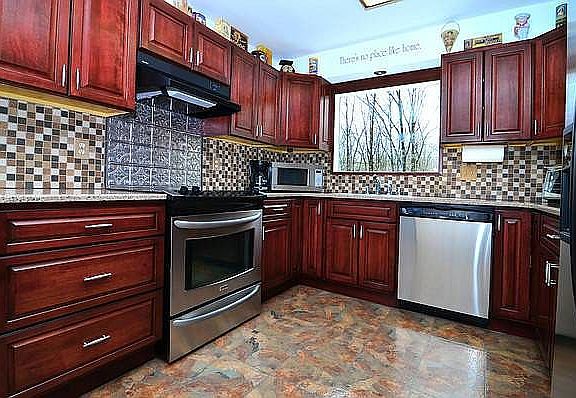 Welcome home to this fantastic center hall colonial nestled on over 2 acres in Mount Olive. Step in to the spacious foyer with entry closet and room for table. Hardwoods through the main floor, updated kitchen with granite counters and stainless steel appliances. The dining room is plenty large for great entertaining, with just a few steps down into the sunken family room with wood burning fireplace and wall to wall hearth. Living room opens into breakfast nook. Sliders from family room lead to back deck.Upstairs, 4 generously sized bedrooms including a large master suite with walk in closet and full bathroom. In the finished basement you will find floor to ceiling shelves for all your collectables, pool table and large storage/utility room. Professionally landscaped with circular driveway and loads of parking, this home is private while still just minutes from Rts 46 and 80.