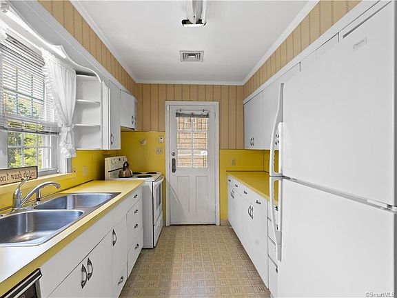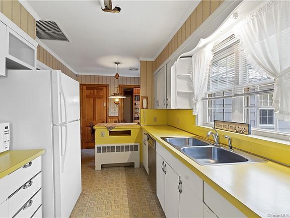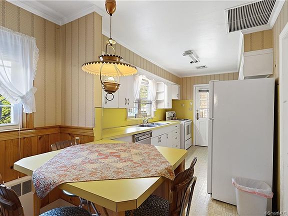 Welcome to this 2/3 bedroom, ranch style home, located in the east side neighborhood. This home offers convenient access to major highways and local amenities. The entranceway greets you with a cozy fireplace, surrounded by crown molding. Although the living and dining room have wall to wall carpets, there are hardwood floors underneath. There are two generous sized bedrooms on the main level and two additional rooms that could easily be used as a 3rd bedroom and an office. In addition to the extra space, there is a bright sunroom where you can wind down after a long day. Head downstairs to the partially finished basement, with plenty of storage space, access to 1 of the 2 garages and the option to complete a second full bathroom. This basement has the potential to be fully finished offering an additional fireplace. Enjoy the shaded backyard or a walk to Meridens most sought out landmark, for your favorite ice cream. Other benefits to this home are the central air, generator and newer windows. This home is ready for the next owners to add their personal touch! Schedule your showing today!