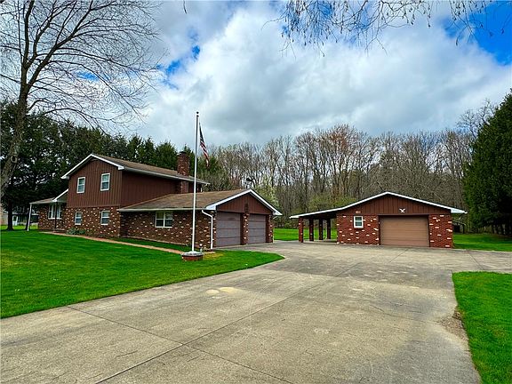 Spacious Multi-Level home. Updated kitchen with newer hardwood floors in kitchen and hallway. Large all seasons room featuring brick flooring and wood ceilings off of the family room with woodburning fireplace. Adjacent room can be used as a home office with a half bath. Additional detached garage with workshop attached and covered area great for a picnic shelter. Enjoy a great summertime in the backyard meant just for entertaining.