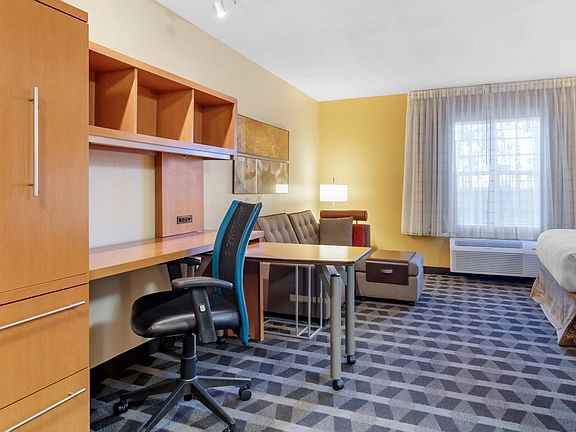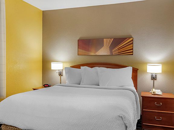 Our pet-friendly facility offers free WiFi, free parking and free coffee in the lobby. Also enjoy an outdoor heated pool, fitness center, and on-site laundry facilities. This facility is 100% smoke-free. Utilities are included in price. No lease needed. Dogs Allowed. 100.00 USD per dog per stay. 2 dogs per room up to 70 lbs. No cats allowed