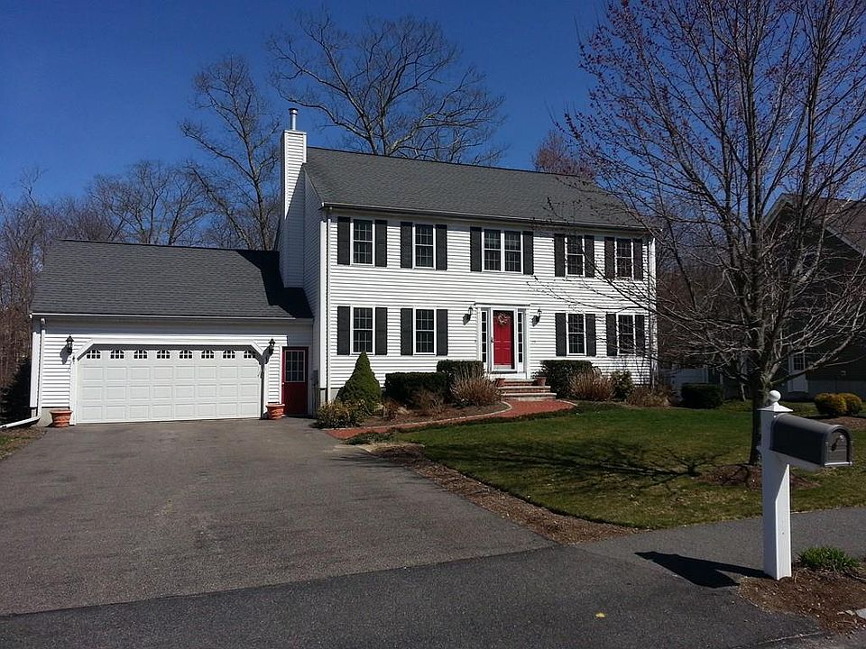 Superb 4 bed Colonial w/attached 2 car garage in fantastic location! 12 year young, one owner home in ideal neighborhood with easy access to highway. OPEN FLOORPLAN! Spacious kitchen and dining area opens into Family room with warm gas fireplace and recessed lighting. Kitchen opens to hardwood floor Dining room (or as used by current owner, Music Room!). Open the walkout slider from the dining area and step onto the 14x14 deck overlooking the level back yard which features a fire pit and is ideal for family or social gatherings. First floor Mud Room with Laundry keeps the clutter segregated. Elegant marble foyer takes you upstairs to the 4 bedrooms, including the Master Suite. Both 2nd floor Baths feature double sinks. Professionally landscaped grounds are more easily maintained with the lawn irrigation system. 2 zones of baseboard hot water heat keep everyone toasty in the winter and 2 zones of Central A/C keep everyone cool in the Summer.