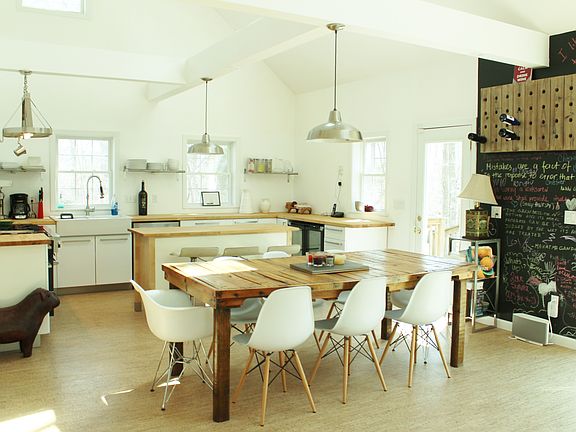 Unique Contemporary home built in 2004 is surrounded by 3.5 acres of serene landscape with hidden retreats, pin-pointed by lush perennials, wooded lot and just a short bike ride from Cherry and Webb, Bakers, Horseneck and Gooseberry beaches. Attention to details and original use of environmentally friendly materials sets this home apart making it an unique place to live and entertain. Open floor plan with soaring cathedral ceilings, large windows and skylights invites the outside the play inside. There are 3 bedrooms, 3.5 bathrooms, 2 car garage, wrap around deck, master suite on first floor, wood stove, double sided fireplace, laundry room, full finished basement with family room, bathroom, bonus room and much more.