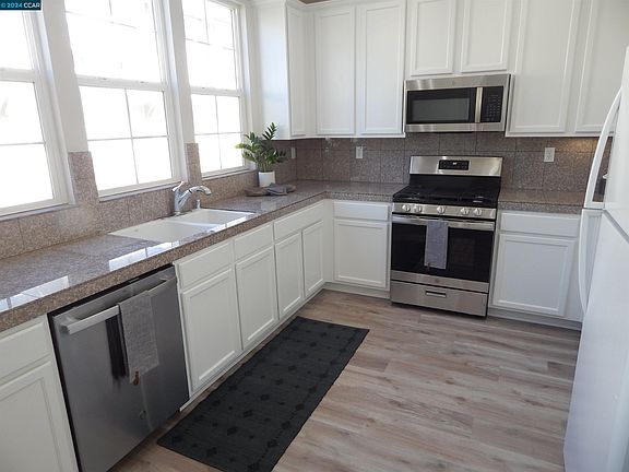 Welcome to 75 Matisse Court this meticulously maintained corner unit townhome, 2 bed/2.5bath, boasts ample space and an abundance of natural light, creating a bright and inviting atmosphere. We have repainted and installed new Luxury Vinyl Plank flooring and carpet through out the entire unit. The main level has an open design with a tastefully upgraded kitchen featuring stainless steel appliances and granite counter tops. Relax in the spacious living room with the cozy gas fireplace or outside on the open spacious patio. The top level presents the large primary bedroom with a walk-in closet and luxurious master en suite. The second bedroom additionally includes its own private bathroom. An excellent feature for families or guests, as it provides privacy and convenience. On the lowest level of this townhome you will find an ample sized two car garage with extra storage. The HOA features low dues and a lovely pool and spa. Conveniently located in the heart of Pleasant Hill, close to various amenities, including restaurants, movie theaters, shopping centers, BART, public parks, and desirable schools. Washer, Dryer and refrigerator make this investment complete and turn key ready.