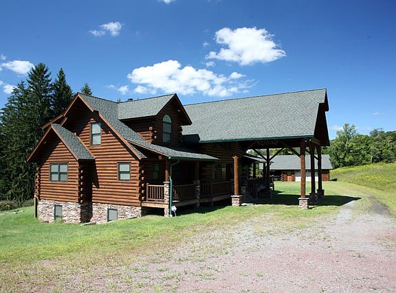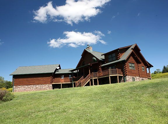 Custom-built Beaver Mountain 6 BR-3.5 bath hand-hewn log home with innumerable high-end details. Privately-set on 147 acres with two ponds and the Ten Mile River running through the land. From a quiet country road, travel down a 1/4 mile driveway to total seclusion and the ultimate getaway. The front of the home boasts a soaring covered entry. Park here or in one of 5 garage bays. Inside, a stone-inlaid foyer flows into the vaulted great room. That detail continues with a massive floor-to-ceiling stone fireplace. Open kitchen and dining area. Kitchen amenities include modern retro-style appliances, granite counters, richly painted cabinets and a pounded copper sink. Master suite on the main floor; 3 more BR's/1 bath up. Finished basement provides family room, 2 BRs, full bath w/sauna, gym and bonus room. Smart phone security & home automation system. Outside, overlook a large pond, perfect for recreation. The land is open fields and woods with trails throughout. This is a rare find!