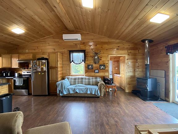 Sit and enjoy the view for hours! If you love privacy, the outdoors and listening to nature come home to 75 Maxies Way, Clifton. Sitting way up high you can see for miles and are surrounded by open land with trees galore! The adorable ranch is finished off with pine tongue and groove boards on the ceilings and walls. Bedroom floors are wood with laminate throughout the rest. The wood stove comes with 2 cord of wood that will keep you warm all winter long. Newly installed heat pump to take the chill off when needed or cool the home down during those hot summer days. Generator hookup works by plugging in the generator and flipping the switch. Two outbuildings for all the extra stuff you need undercover. Enjoy the portable hot tub on the front deck that sits right out your bedroom sliding glass door.