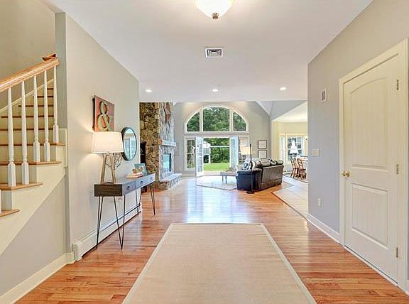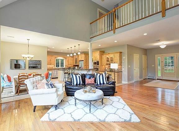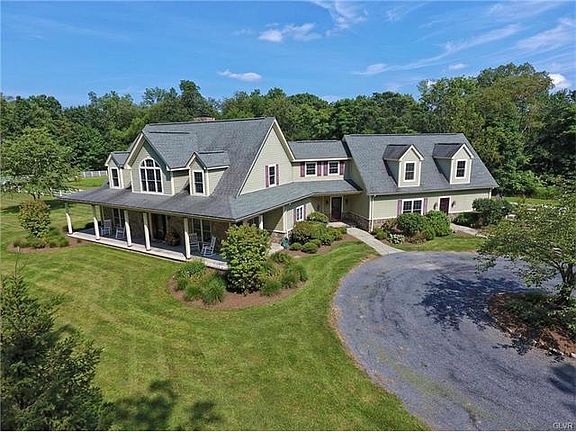 Custom built home on a cul-de-sac location with separate In Law/Guest House. Situated on almost 6 acres you will experience luxury, one of a kind living. First floor features grand/open concept with 18 ft ceilings & floor to ceiling stone fireplace, French doors leading to patio. Gourmet kitchen w/ custom cabinetry,SS appliances, granite counters, large island w/ prep sink, farmhouse style sink. Master BR/en suite on 1st floor with access to the grounds via French Doors. Laundry on first floor (washer/dryer included). The basement is just waiting to be finished with a full bathroom already installed. Guest/In-law Quarters are well designed w/ private & shared entrances to the main house. Radiant floor heat. 3 ft wide doorways throughout. Large kitchen, breakfast room, spacious living room, and 1st floor BR w/ French doors to patio. Detached garage with 10ft garage doors and additional storage shed/garage. Well-designed and planned for extended living & enjoyment of relaxing views.