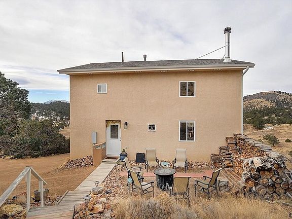 In Historic Rosita sits a home on 6 acres of partly treed rolling meadow and sloping bluffs. The house, built using energy friendly insulated concrete forms, is perfectly positioned to watch the sun setting over the snow-covered peaks of the Sangre de Cristo mountains. From the back parking area, you enter the home on the main floor and walk into a well-designed kitchen for cooking and enjoying the mountain views. The dining room is directly off the kitchen and leads to the gorgeously decorated and designed living room with a wood-burning stove. A 30x10 covered deck provides the perfect spot to entertain. Up a wide staircase is the master bedroom with a walk-in closet and 3/4 bath, as well as a large loft area overlooking the living room below and allowing the heat from the wood-burning stove to rise and heat the upstairs. Going downstairs, you will find the 2nd bedroom, a large laundry area, a full bathroom, and a large family room with walk-out access to the front of the property. There is plenty of parking in back, as well as the option of building a garage. Bring your dreams and come see this home that is ready to be yours. For showings, call ShowingTime at 800-746-9464.