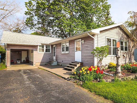 How cute is this Greece ranch? Coming in at just over 1,100 sq. ft., this home is move-in ready! A large living area at the front makes this home feel very spacious, plus you get bright natural light all day. Sturdy wood cabinets in the kitchen provide for PLENTY of storage – you surely won’t run out of room! Matching white appliances brighten up the room and play off the white beadboard that is making a comeback this year! There is also enough space in here to add a table for an eat-in kitchen or an island for extra prep space. This home has 3 bedrooms, including a main suite that is attached to 1 of the home’s 2 full bathrooms (the other is just down the hall). All the bedrooms have gorgeous hardwood floors, as does the living room underneath the carpet! Plenty of storage space can be found in the basement along with the laundry. Enjoy time outside? Check out the backyard that provides a mix of sunshine and shade, perfect for various gardening endeavors! There’s also a storage shed in the back to tuck away all your planting paraphernalia. This home also has a newer HVAC system and a tear-off roof done in 2018. Don’t wait to see it!