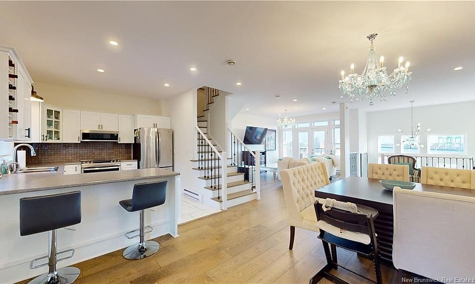 Step into a lifestyle where comfort, style, and effortless living come together. This executive two-story townhouse offers a front-row seat to Saint John Harbour, giving you daily sunrises, sparkling water views, and a peaceful backdrop that makes home your favourite place to be. Thoughtfully renovated from top to bottom, it’s designed for those who value low-maintenance living without sacrificing luxury or character. The main floor’s open layout invites you to relax and entertain with ease—flooded with natural light and framed by floor-to-ceiling windows that capture the changing harbour scenery. The sleek, modern kitchen blends seamlessly into the space, making gatherings feel natural and inviting. Upstairs, the primary suite becomes your personal retreat with its walk-in closet and ensuite, while the guest bedroom and versatile flex room adapt to your lifestyle—whether you work from home, host visitors, or need a quiet spot to unwind. The walkout lower level expands your living space with a cozy rec room, powder room, and direct access to your own private garage. Outside, choose between two distinct experiences: enjoy the energy of harbour life from the front deck—perfect for fireworks, ship watching, and evening cocktails—or slip away to the private back deck with hot tub, where unwinding becomes part of your routine. With off-street parking and a prime location just minutes from Uptown, this home offers the ideal blend of convenience, privacy, and waterfront allure.