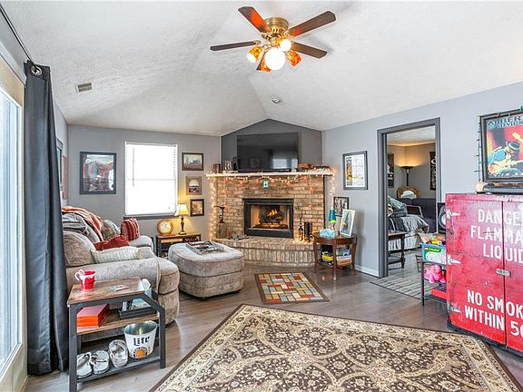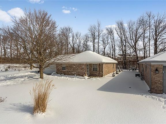 Very Hard to find well cared for 2 bedroom ALL Brick Ranch in New Palestine. Home features, Bellawood hardwood floors in Hall,Family Room, & Both Bedrooms (installed in 2018), Decorative concrete patio 2020, New Roof 2016, Masonry Fireplace with gas logs. All Kitchen Appliances stay. Perfect starter home!
