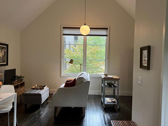 Our guest house sits behind our 1915 bungalow in the Chestnut Hills neighborhood on Liberty Street, an historic street referenced in Thomas Wolfe's Look Homeward Angel. At just under 500 sq. ft, your retreat sits high among the trees with a private, lighted carport below, along with a storage unit. This is a very quiet spot in a beautiful residential neighborhood. Lovely views surround you, featuring Sunset Mountain, and turn-of-the century homes, one of which is the gorgeous Beaufort Inn. The space offers the perfect balance of bright and shady, with a modern, fresh finish, new appliances including washer/dryer, a Zinus green queen mattress, thoughtful appointments, speedy wireless, HDTV with Roku including access to YouTube TV streaming, a generous closet, and an efficient Euro-style kitchen space. It is furnished in a simple, contemporary but warm style. Our goal is to provide comfort, privacy, and convenient access to everything that makes Asheville such a great place to live. A bit more about Liberty Street, one of the oldest streets in Asheville. Only nine homes populate this neighborhood passage - an assortment of simple bungalows, Queen Annes, Victorian Farmhouses, and fine Arts & Crafts homes, all surrounded by ancient white oaks, spruce and sycamore. Ironically, one of the oldest streets in Asheville is nestled close to the freshest entrepreneurial hives in the city. Two blocks away are the Asheville Yoga Center, The Ayurvedic Institute, Pulp&Sprout (a natural food cafe), and Liberty House Coffee & Cafe, all run by energetic and passionate people who love their neighborhood. One block west is the fabulous Plant Restaurant. Three blocks north on Charlotte Street sits Taco Temple, Jettie Rae's Oyster House, Bone & Broth, City Bakery, The Chop Shop Butcher, and Metro Wines. It's a 12-minute walk downtown, verified many times while going to concerts, farmer's markets, street festivals, shopping, or to our favorite cocktail spot, Sovereign Remedies. For groceries, you'll find our major regional grocery chain Harris Teeter, Trader Joe's and Whole Foods are all just a few blocks away. We are looking for a quiet and mature person. Could be fine for 2 depending on lease duration. All utilities are included. We require first and last's month rent, credit check, background check and $500 deposit.