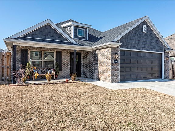 WELCOME HOME! This beautiful 3 bedroom 2 bathroom home is conveniently located near parks, schools, eateries, shopping, I-49 and the University of Arkansas Campus! From the covered front porch head into the open concept living room with Luxury Vinyl Plank Flooring, crown molding, and gas log fireplace! Enjoy an L-shaped eat-in kitchen with white cabinetry, granite countertops, stainless steel appliances, white subway tiles, and raised bar! Relax and rejuvenate in the primary bedroom with tray ceiling and private ensuite feat: dual sink vanity, and walk in closet! Plus two additional bedrooms and one bathroom. Head out back to the extended covered back patio overlooking the fenced in back lawn perfect for the upcoming spring & summer. WASHER/DRYER/REFRIGERATOR INCLUDED! Don’t Miss Out! Act Now!
