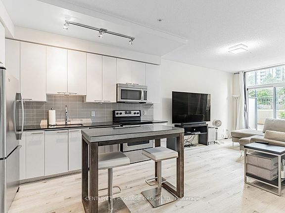 Spacious 1 Bedroom + Den! 739 sq ft! This rarely available unit features its own private patio and feels more like a townhouse than a condo! The den is a separate room and can function as a bedroom. It offers a functional, open-concept layout with upgraded 9-foot ceilings. The modern kitchen includes granite countertops and stainless steel appliances. Laminate floors are throughout the home. The large bedroom has a walk-in closet, and the substantial den is suitable as a second bedroom. There are two washrooms and plenty of natural lighting. It is conveniently located within walking distance to all amenities, including shopping options like Walmart, Home sense, Winners, Promenade Mall, restaurants, schools, and public transit. Minutes to Hwy 407. A must-see! Check out the virtual tour!
