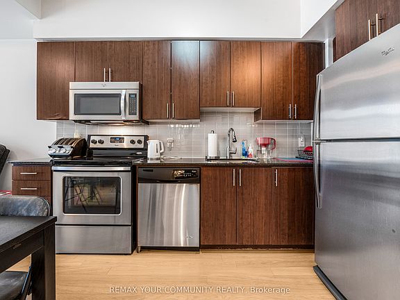 Welcome to a bright and thoughtfully designed 1-bed + den condo at The Fountains, nestled in the heart of Vaughan's desirable Beverley Glen community. This comfortable ~645 sq ft suite features an open-concept layout with 9-foot ceilings, abundant natural light, stainless steel appliances, and in-suite laundry. Step outside to your private ground-level patio - a perfect extension of your living space for morning coffee or casual evenings. Residents enjoy a full range of resort-style amenities including an indoor pool, fitness centre, party and games rooms, 24-hour concierge and more. Ideally located just steps from Promenade Mall, shops, restaurants, parks, transit and with easy access to Highways 7, 407 and 400, this home strikes a great balance of convenience and lifestyle for first-time buyers, investors or anyone seeking low-maintenance urban living.