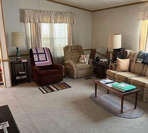 Double Wide Mobile home with a sharp sunporch on the front to enjoy your favorite beverage and relax or entertain. Carport and shed, paved driveway. This unit is located on a nicely landscaped corner lot in the Forest Manor 55+ community. 2 bedrooms and 2 full baths. Central air, newer thermostat. Some furnishings are negotiable. Rent is $515.58 and includes Garbage, Sewer, Water.