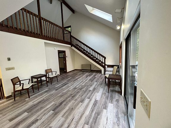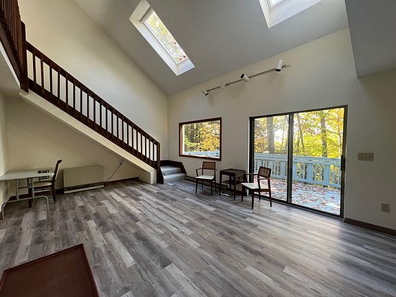 You ask why has this house has been on the market so long. Long term tenants didn't allow showing, the property needed tenants gone so paint, new flooring along with a deep cleaning could be in done. All done in October. Welcome to Quechee! Have you been thinking about an investment property or thinking of building a home you could have both with this 3 lot property. Enjoy the total privacy of this lot, plus 2 more lots that are included for a total of 3.57+/- acres. 2 driveway into this property. The ability to build a guest house and or a garage with driveway from Hard Road, already to the property. On the corner of Nauhlaka Lane and Hard Rd is this 3 full level, 3 bedroom 3 full bath home. The home itself sits on 1 acre +/-, basement level has ensuite bath, with family room with wood stove and laundry room. Second level has ensuite bath also with access to living area. 3rd level has bedrooms with balcony deck with bath across the hall with exlarge storage closet, open loft overlooking the living room area. The house has lots of light and a wonderful deck off the living/dining area. Owner has done the refreshing and the house is ready to use as an excellence source of rental income. Build on one of the other 2 lots. One driveway off Naulahka Lane, the other driveway up to the back of the house at 399 Hard Road. With the ownership of the 2 extra lots there is plenty of room to build a garage.