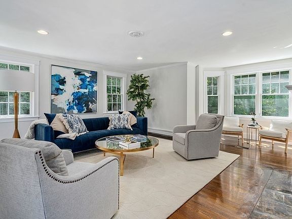 Ideally set on over one bucolic acre, walking distance to conservation land and the Weston Reservoir, this special property provides privacy in a south side neighborhood close to town, public schools, Land Sake Farm, and just minutes from the Mass Pike. An elegant home, thoughtfully expanded and thoroughly renovated providing an exceptional setting for indoor-outdoor living and entertaining. With high ceilings and expansive windows throughout, this home provides abundant sunlight and sweeping views of the gorgeous outdoor landscape featuring an expansive lawn, perennial gardens, and koi pond. Offering a modern floor plan, the kitchen opens to a lovely dining area and spacious family room with wood-burning fireplace. The expansive living room and pretty dining room are ideal for entertaining. A private first floor office is ideal for those working from home. The second floor offers a bright and spacious primary bedroom plus three additional bedrooms and a full bath.
