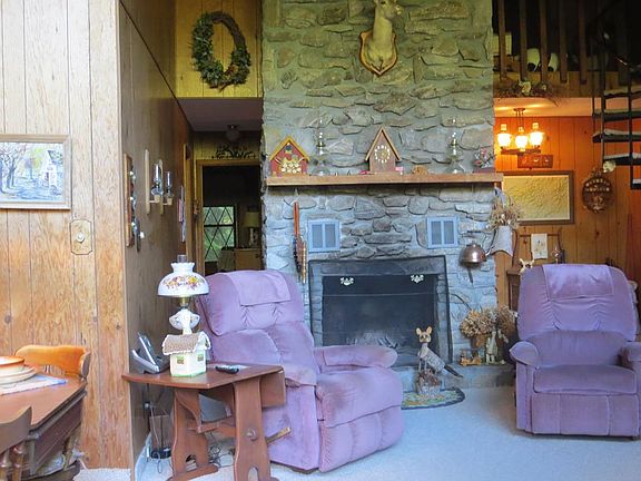 "Hemlock Hide-Away" is name of this wonderful summer home. 3BR/2Bath mountain cabin. Main level has LR with vaulted ceilings, Massive stone wood burning F/P for heat, Dining Area, Kitchen, BR and Bath. Sliding doors to deck for sweeping vistas of mountains. Sit or dine on deck and enjoy the essence of mountain living. Washer/Dryer is located off of Kitchen deck in small utility building. Spiral stairs ascend to loft area that features private BR/Bath. Wooded lot is Nature's playground. Large storage building for mowers, garden tools and hiking equipment. Home being sold "AS IS".