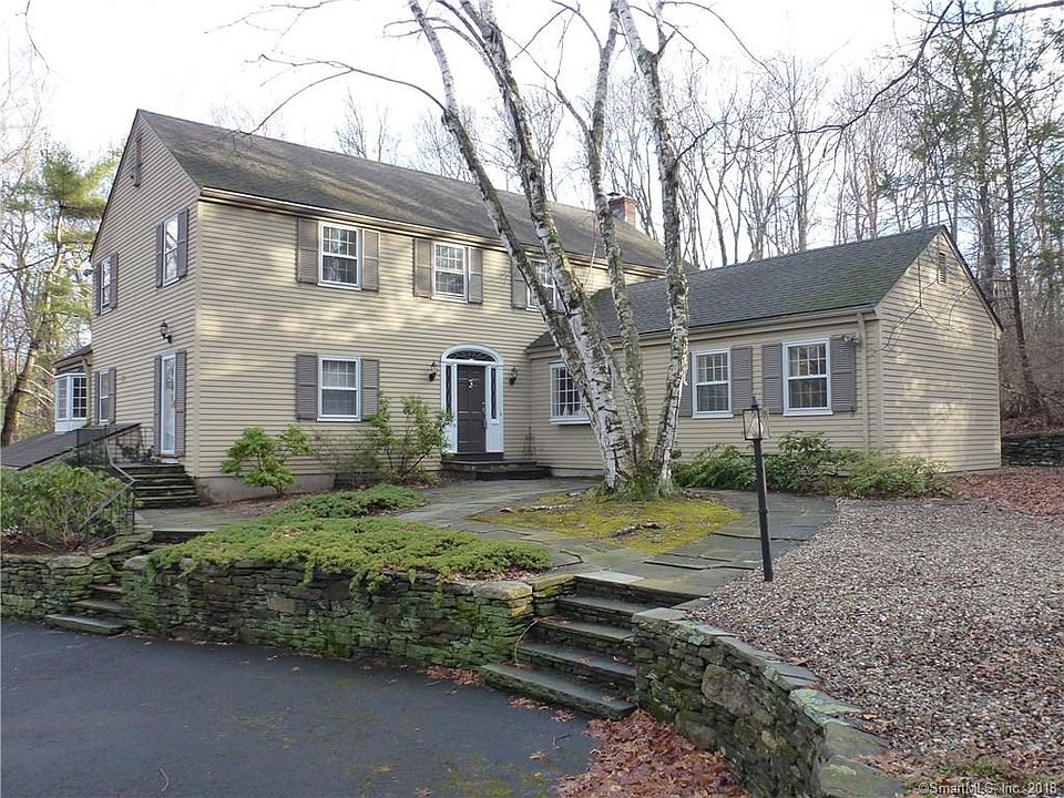 Privacy and tranquility is the order of the day in this beautiful 5 bedroom, 3.1 bath colonial, West of Mountain Road. It is tucked away on a 1.8 acre lot but minutes to the Center, shopping, and the highways. The main floor offers a spacious kitchen open to a family room, gracious formal living and dining rooms, and a perfect au pair or in-law suite with sitting room, bedroom, and a full bath. Upstairs you will find a master bedroom suite with full bath, walk-in closet, and dressing area plus 3 more bedrooms and a hall bath with laundry. Find extra space in the paneled & carpeted lower level and great storage in the walk up attic. Spring IS coming - kick back and commune with nature on the beautiful bluestone patio accessible from the living room or family room. This lovely home is comfortable and functional as it is but offers many possibilities for you to make it your own.