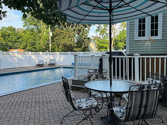 Beautifully maintained cape in walking distance from Elementary, Middle and High schools. 2 car garage build in 2006. Beautiful in ground pool and patio with vinyl fencing, great entertaining area. Very spacious house with large family room with built ins, office, living room with fireplace, hardwood floors, eat in kitchen as well as a formal dining room. 4 bedrooms on 2nd floor with a large primary bedroom with walk in closet and deck off the bedroom. There is so much to love about this home..