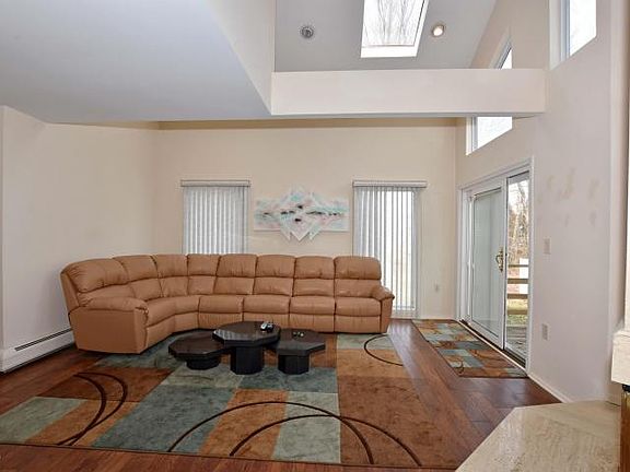 A beautiful, cul de sac home on a private and enlarged lot in Old Bridge. Upon entry you'll find newer pergo floors running into the family room. Nestled between the spacious family room and living room is a center fireplace. The family room features recessed lighting and a beautiful skylight. The expanded kitchen features oak cabinets and a stainless steel range, dishwasher, and microwave and a large pantry. Adorning the dining room is crown molding. The master bedroom is very spacious and well lit. The 2nd, 3rd, and 4th bedrooms offer plenty of space and the 4th bedroom features two closets. The 13 course basement contains the utilies and newer washer and dryer. Out back you'll find a spacious raised deck perfect for entertaining with views of the private backyard.