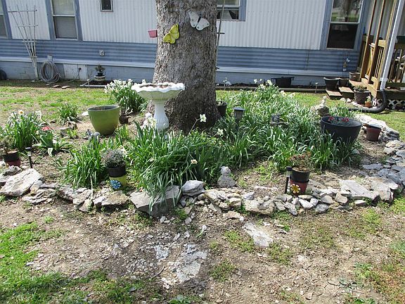 "Living Large for Little Money" ~ Singlewide on permanent block foundation w/covered front porch and back deck overlooking wooded acre lot ~ Garden Spot ~ Storage Bldg ~ Parklike Yard ~ Nice for the Price!