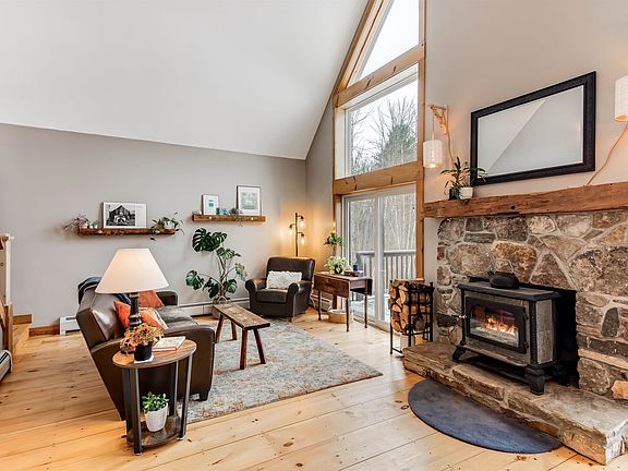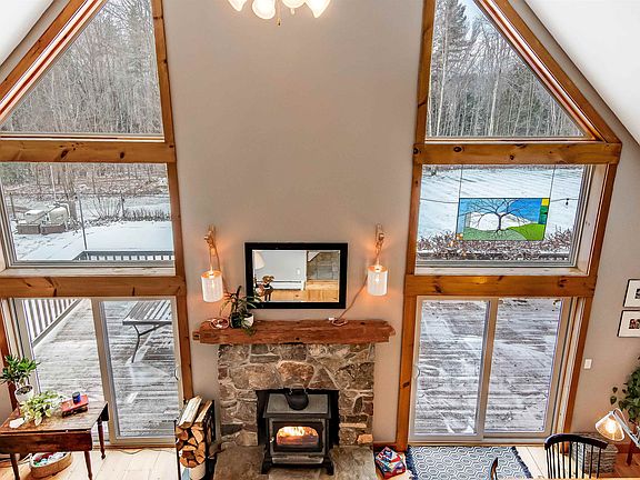 Nestled on 11.3 private acres sits this quintessential 3-bed, 2-bath Vermont contemporary. Cathedral ceilings, floor-to-ceiling windows, sweeping views, and gorgeous refinished pine floors (2021) greet you upon entry to the open-concept living space. Featuring a woodstove with stone surround for chilly days and double glass sliding doors for easy access to the expansive deck in warmer months, this home is spectacular in every season. Open to the dining/living, the kitchen offers stainless steel appliances, tiled floors, farmhouse sink, and breakfast bar. A bright office, updated full bath (2023), tiled mudroom with storage, and access to the 2-car garage complete the main floor. Continue upstairs to find the well-sized primary bedroom with a walk-in closet, full bath with double vanity, convenient hall laundry, and 2 additional bedrooms. Entertain with ease in the finished basement, which features a new propane stove (2023), bar with kegerator, built-in speakers, direct garage access, and plenty of natural light. Outside, the opportunities for enjoyment are endless with an in-ground pool, hot tub with Angelique deck, lush lawn, raised garden beds, and stunning 16'x20' post & beam barn with loft and lift, built in 2016. Improvements include new roof (2014), new windows (2021) & more-see features sheet. Located just 10 minutes from the Essex Experience, and 30 minutes from Burlington and skiing destinations, the best of Vermont living is found here! Showings delayed until 1/12.